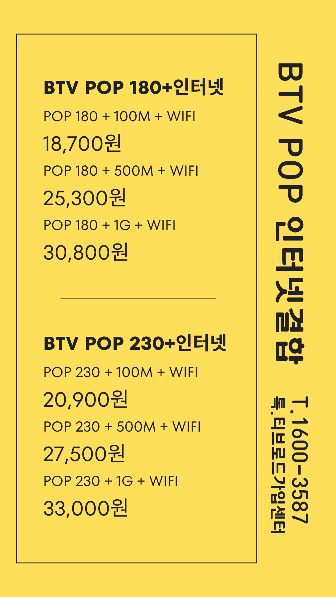 SK티브로드 BtvPOP 케이블 TV유선방송 인터넷 T브로드밴드