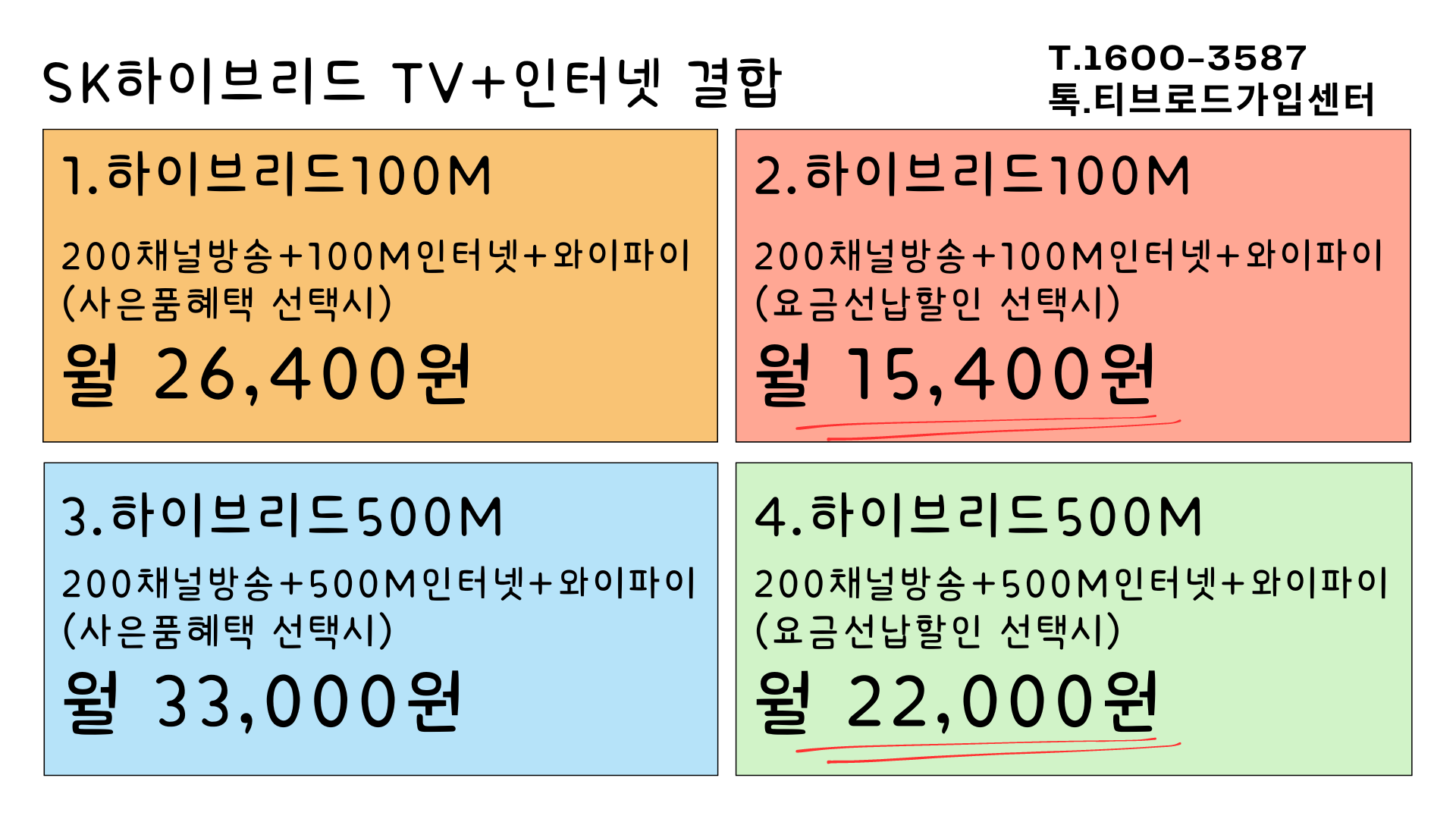 9월 SKBtv케이블 티브로드 유선방송 T브로드밴드 알뜰인터넷 요금제